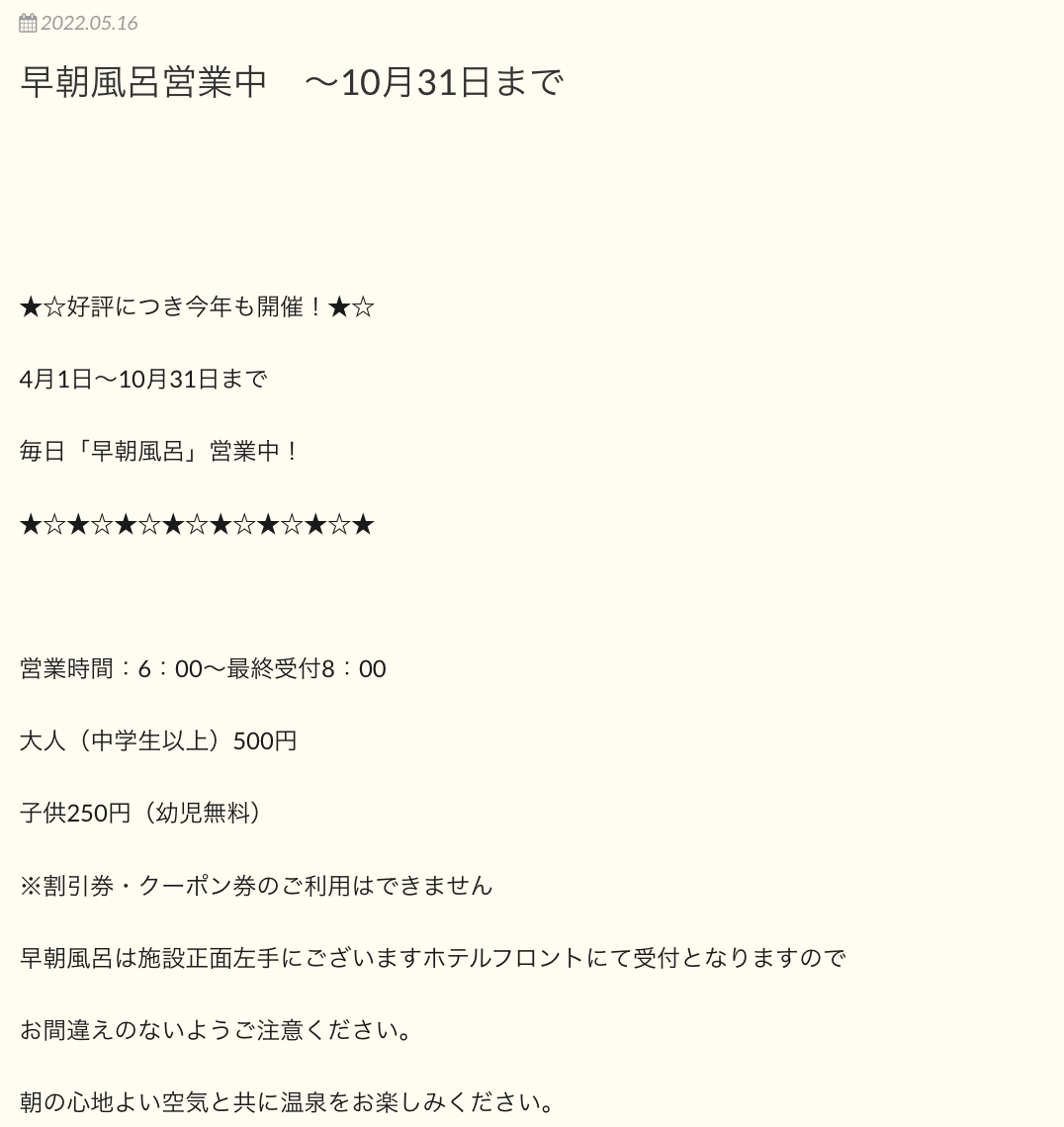北竜温泉・早朝風呂営業中・2022年4月1日〜10月31日まで