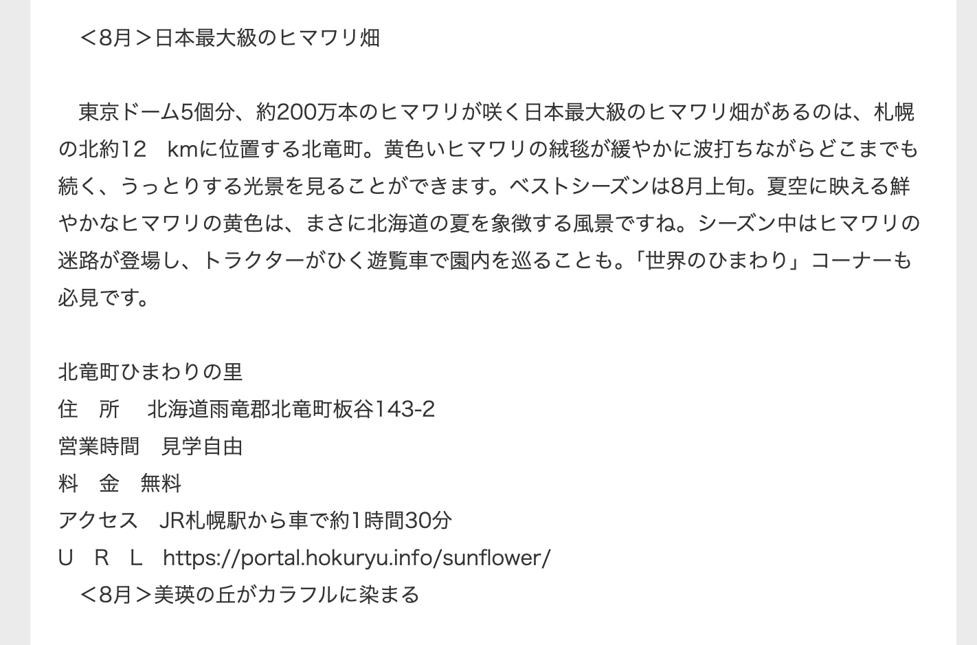 LINEヤフー株式会社(東京都)が運営するインターネットサイト【Yahoo!ファイナンス】に、「北竜町ひまわりの里:【北海道】死ぬまでに1度は見たい「7色の花畑」、海外観光客も絶景に驚嘆!〈写真付き〉【地球の歩き方編集室】」の記事(4月27日付け)が掲載されていますので、ご紹介いたします。