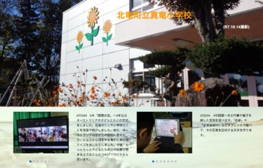6月13日(木)5年外国語~今日は熊本県の名所や食べ物おスライドを見ました。「行ってみたいな」「おいしそうだな」などの思いを、先生との英会話にのせていきます【真竜小学校】