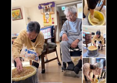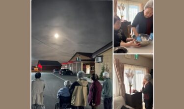 12月21日(土)今日は冬至です!利用者さんにはゆず湯の入浴剤を入れてお風呂に入ってもらいました。午後から白玉餅を皆さんで丸めてもらいかぼちゃぜんざいを作って食べました【グループホーム碧水】