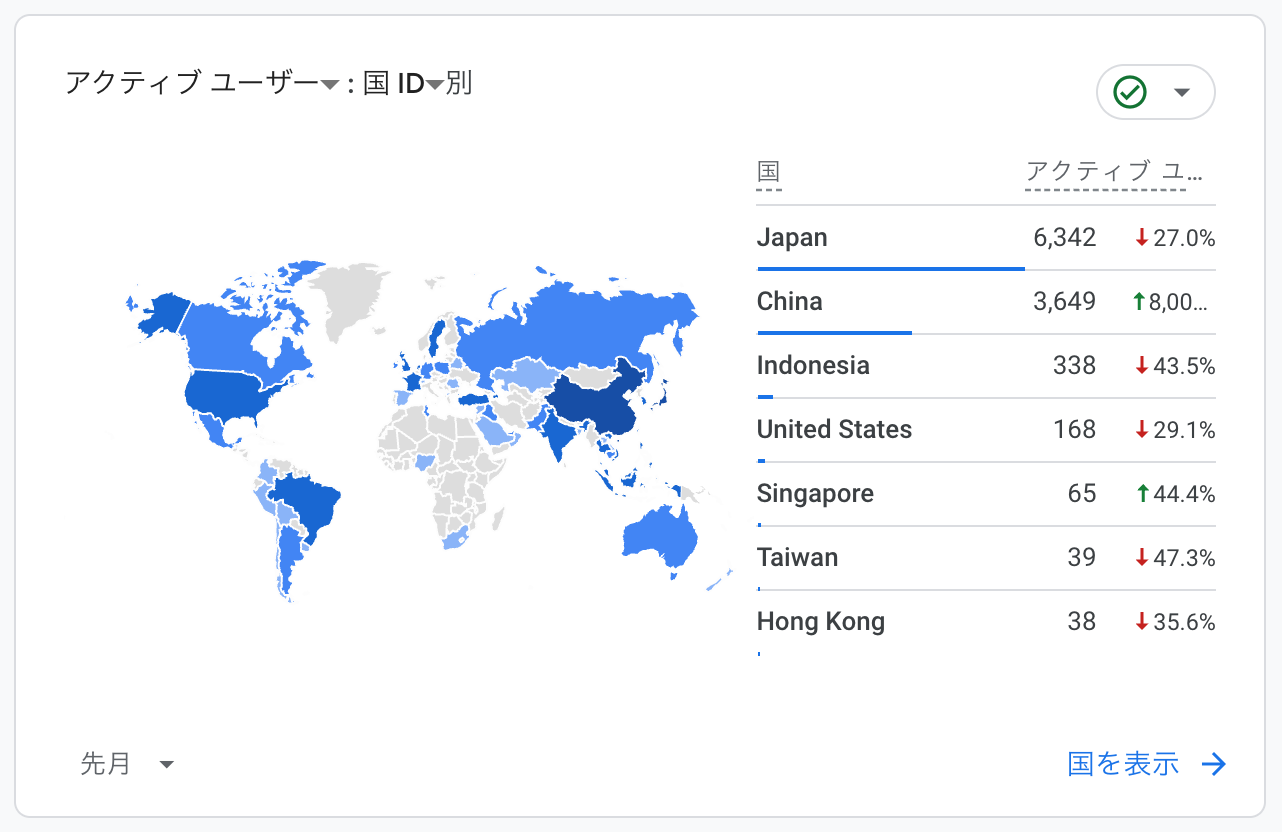 ◉ 中国 3,649人、インドネシア 338人、米国 168人、シンガポール65人、台湾 39人、香港 38人、フランス 22人、トルコ22人、ベトナム19人、他。