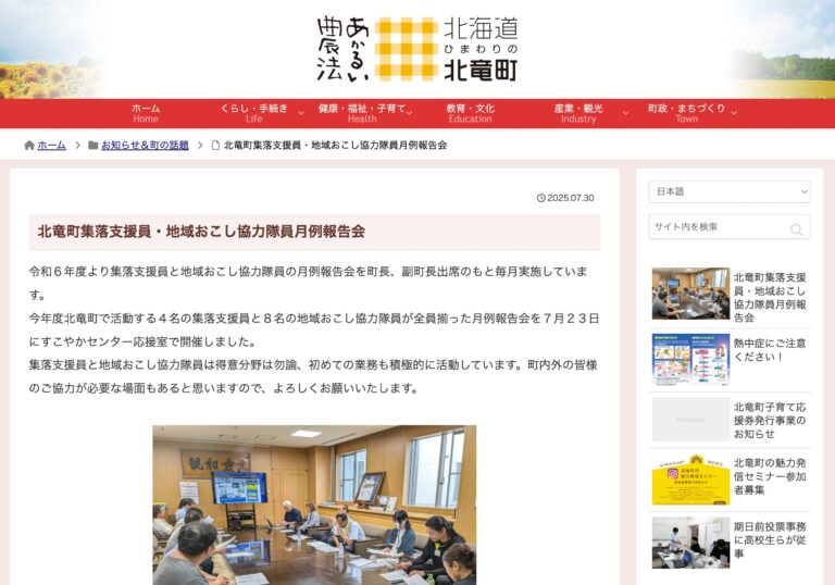 Cümə, 25 İyul 2025, Çərşənbə günü, 23 İyul, Hokuryu qəsəbəsində kənd tərəfdarları və yerli canlandırma əməkdaşlıq qrupu üzvləri tərəfindən aylıq fəaliyyət hesabat yığıncağı keçirildi. Bələdiyyə sədri Sasaki də iştirak etdi və "Günəbaxan Festivalı 2025" üçün portal saytının rəhbərliyi və SNS müzakirə edildi.