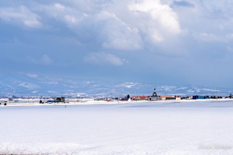 Mavi dağlar, ağ qar tarlaları və Günəbaxan Parkı Hokuryu Onsen