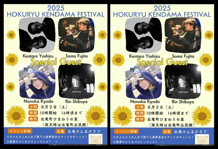 2025年8月4日(月) 北海道新聞社(札幌市)が運営するインターネットサイト【北海道新聞デジタル】に、「けん玉 憧れのプレーヤーと 北竜のフェスで技披露」の記事(8月3日付け)が掲載されていますので […]