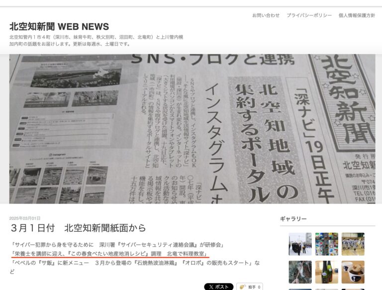 2025年3月3日(月) 北空知新聞社(深川市)が運営するインターネットサイト【北空知新聞】に、「栄養士を講師に迎え、『この春食べたい地産地消レシピ』調理 北竜で料理教室」の記事(3月1日付け)が掲載 […]