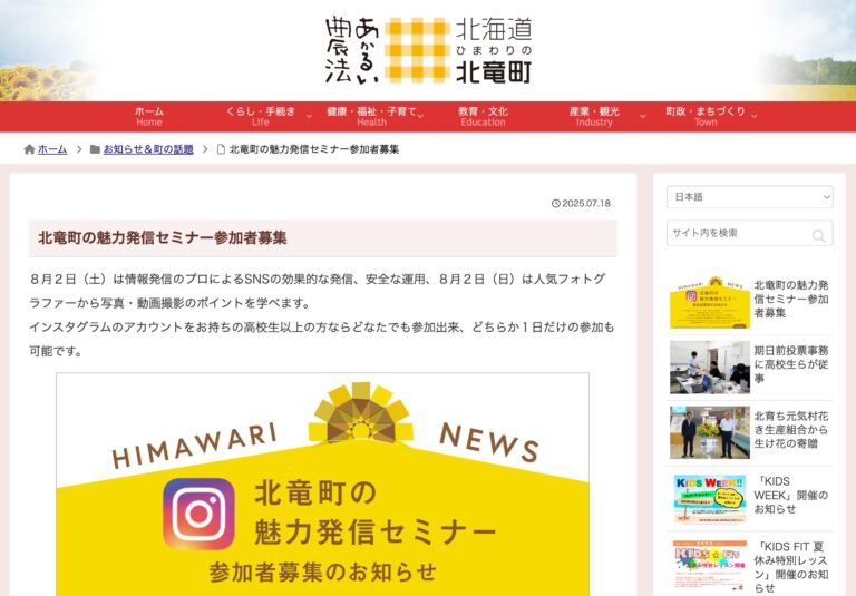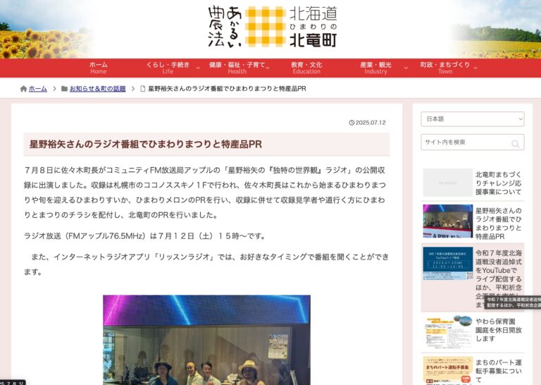2025年7月9日(火) 6月29日(日)、札幌市で令和7年度「さっぽろ北竜祭」が開催されました。北竜町出身者やゆかりのある方々58名が集い、故郷の話題に花を咲かせました。佐々木町長からは、北竜町が地 […]