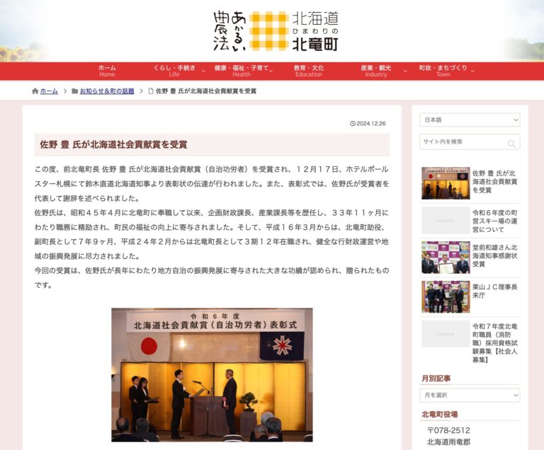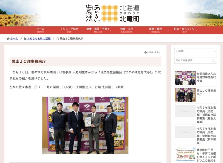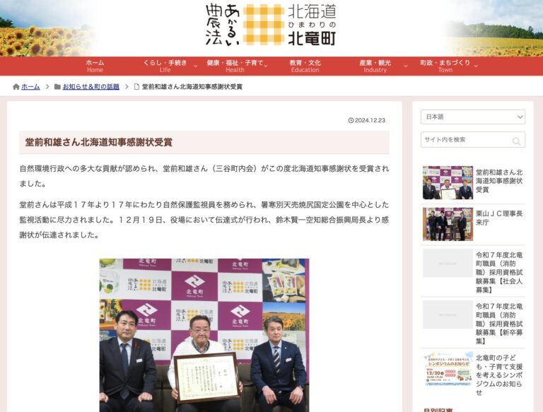 2024年12月26日(木) 北海道新聞社(札幌市)が運営するインターネットサイト【北海道新聞デジタル】に、「教育長選任(25日)▽空知管内北竜町 田中佳樹氏(68)新(岩見沢市教育委員)」の記事(1 […]