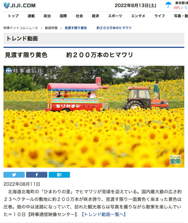 2022年8月15日(月) (株)時事通信社(東京)が運営するインターネットサイト『時事ドットコム』の「トレンド動画」コーナーに、「見渡す限り黄色」の動画(8月11日付け)が掲載されましたので、ご紹介 […]