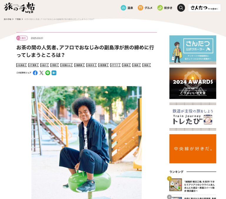 2025年3月3日(月) 株式会社交通新聞社(東京都)が運営するインターネットサイト【さんたつ by 散歩の達人】に、「お茶の間の人気者、アフロでおなじみの副島淳が旅の締めに行ってしまうところは?」の […]