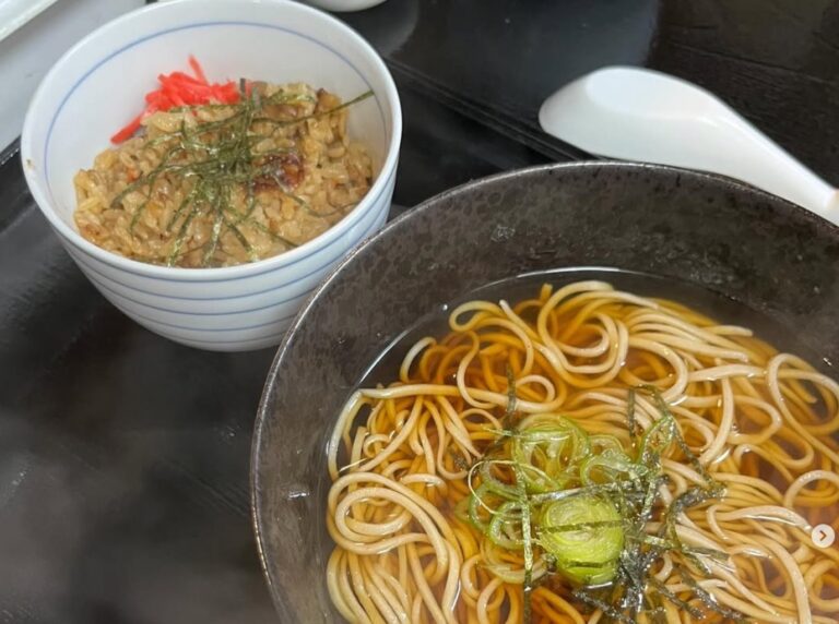 🌻 4月25日(土)本日の日替わりランチ:ネバネバ蕎麦と焼きおにぎりセット でした ♪【お食事処ひまわり】
