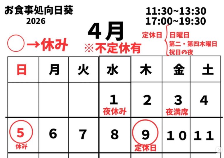 2026年4月2日(木) この投稿をInstagramで見る お食事処 向日葵🌻(@himawari_hokuryu)がシェアした投稿
