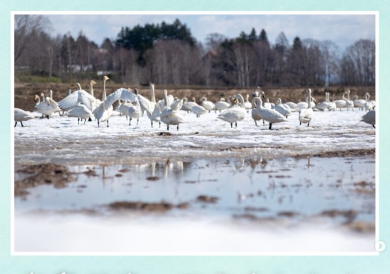 雪解け水によってすっかり勢いを増した川と、飛来した白鳥を目撃することができました。🦢【北竜町ひまわり観光協会・酒井優斗】