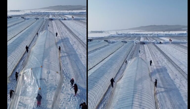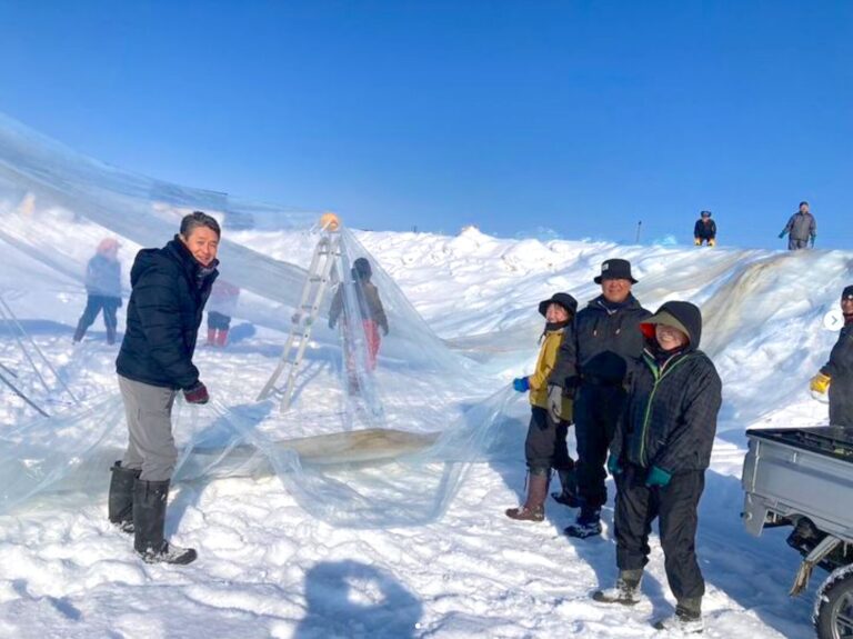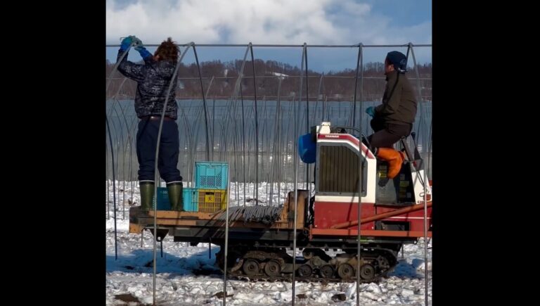 3月20日(祝)am 6:00 〜 2倍速動画 🎥 ビニールハウスのテントかけ ドローン撮影。マイナス気温の中、頑張りました 🌅 昨年と違う真っ白な景色にもご注目ください ❄️【農事組合法人ほのか】