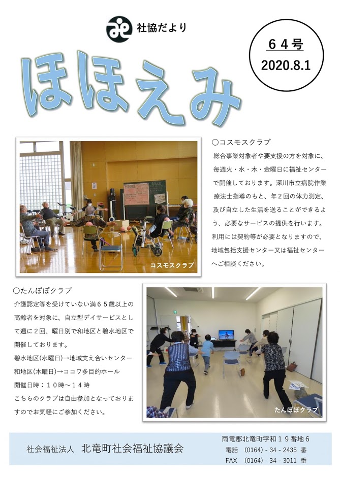 北竜町社協だより『ほほえみ』64号(2020年8月1日)