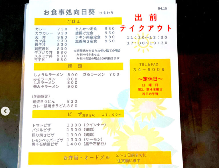 2022年10月3日(月) この投稿をInstagramで見る お食事処 向日葵🌻(@himawari_hokuryu)がシェアした投稿