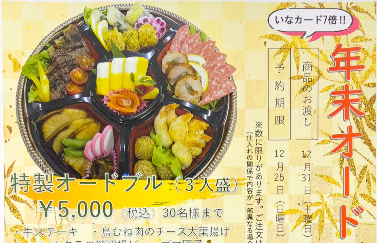 年末年始オードブル(2022年・2023用)申込み受付中・12月25日(日)締め切り