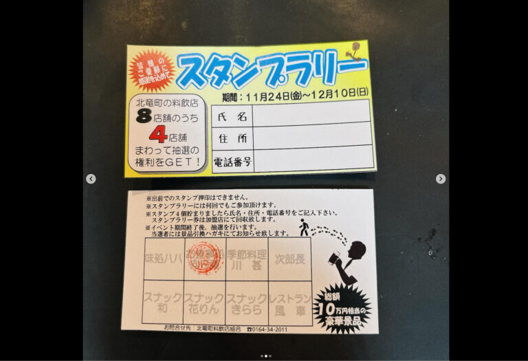 🌻 11月24日(金)北竜町料飲店組合主催の「グルメグリスタンプラリー」始まります! 4店舗のスタンプを貯めて町内で使えるグルメクーポンゲットしてください👍【お食事処向日葵】