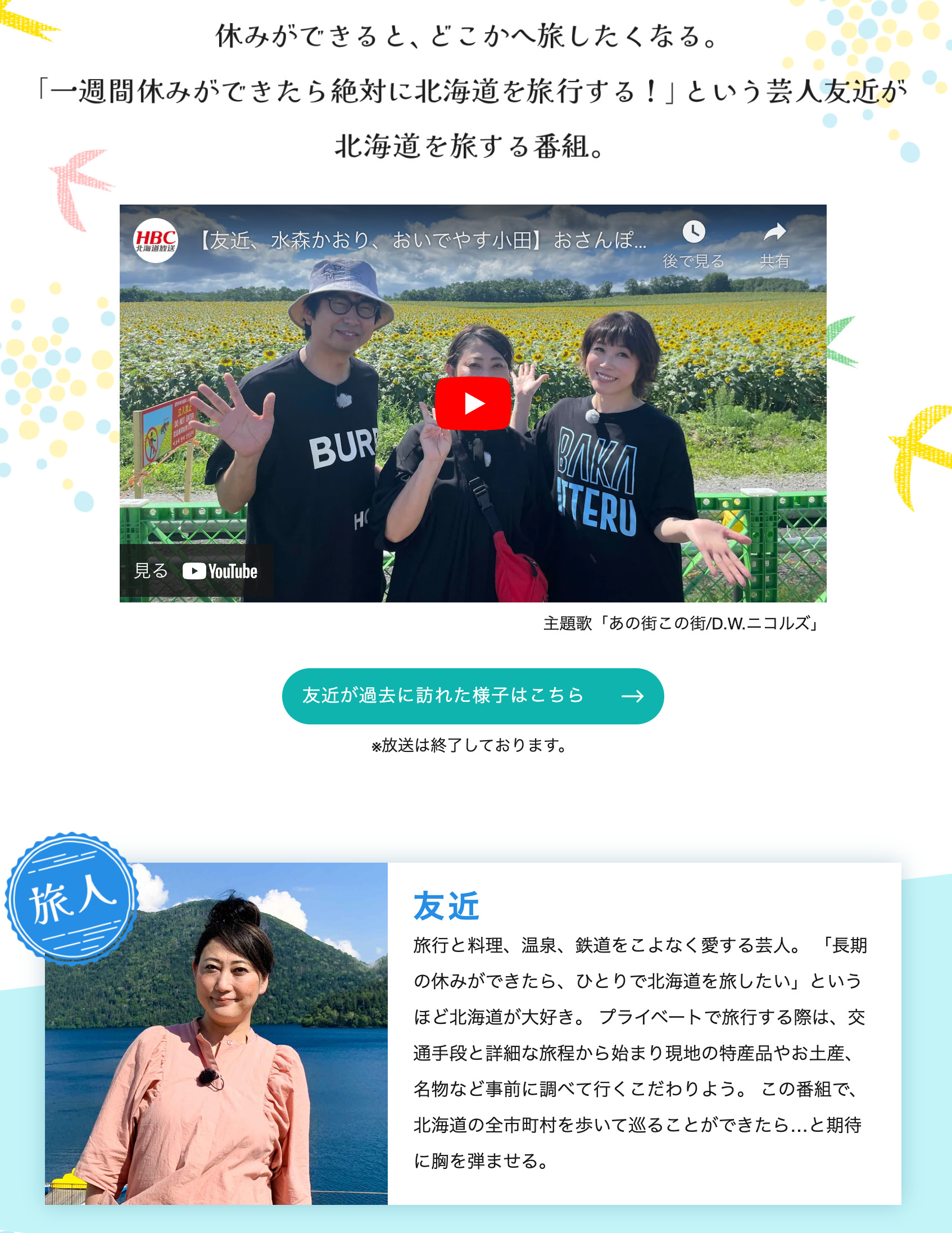 HBC「おさんぽ北海道〜この旅はお世話になります〜」北竜町登場!