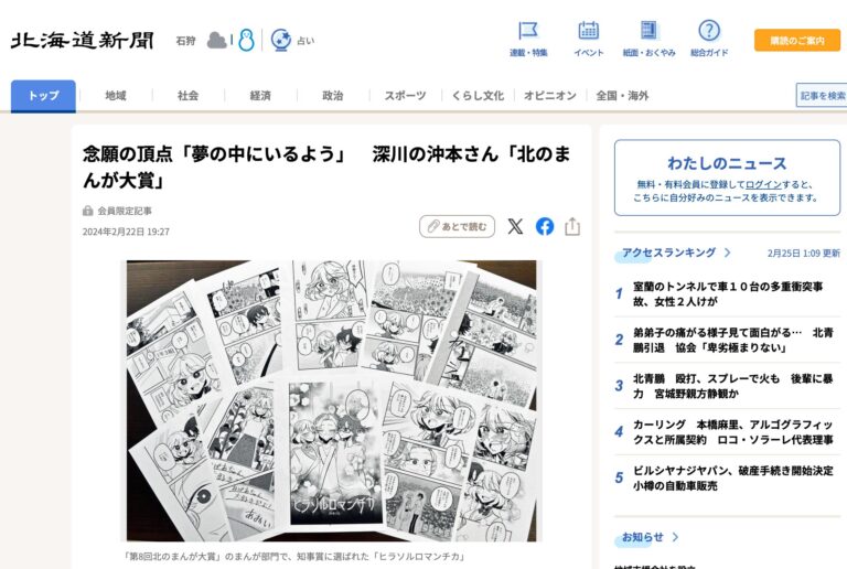 On Monday, February 26, 2024, the Hokkaido Shimbun Digital website operated by the Hokkaido Shimbun (Sapporo) published an article titled "Fukagawa's Okimoto Wins the Northern Manga Award: 'Like a Dream' - Achieving His Long-Awaited Dream" (February 22nd) [...]