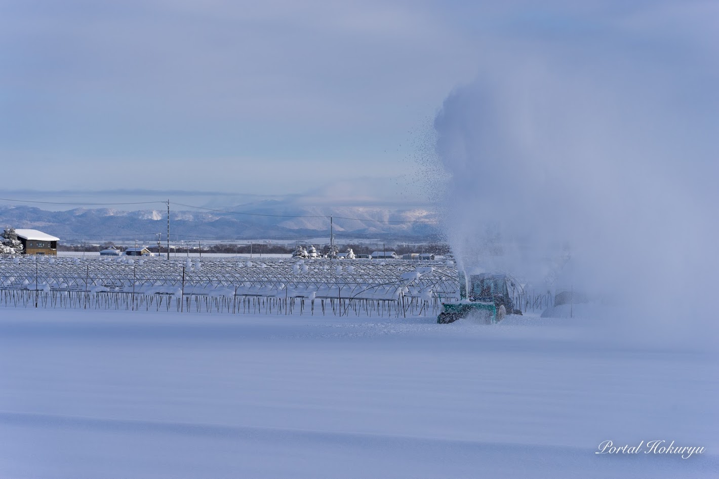 2020年12月25日(金) 町のあちこちで、除雪機が大活躍するこのごろ。。。 噴水の如く、空に向かって舞い上がる真っ白な噴雪が、雲と混じり合う風景です。 ◇ noboru & ikuko