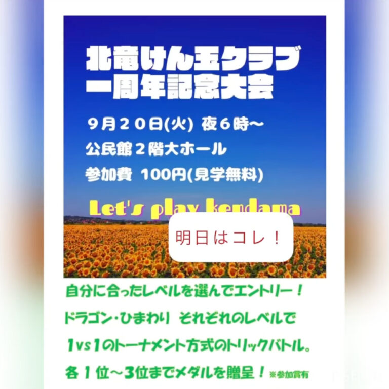 2022年9月20日(火) この投稿をInstagramで見る 北竜けん玉クラブ(@hokuryukendama)がシェアした投稿
