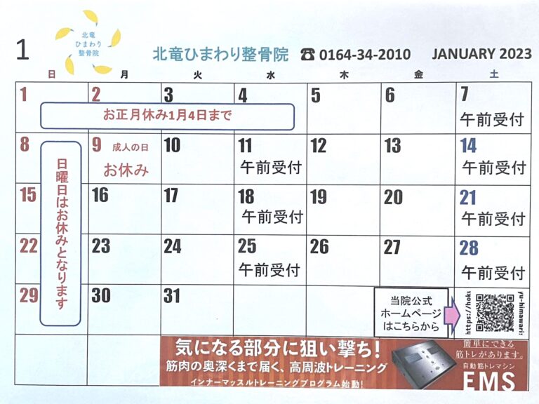 1月のカレンダーです。人間万事塞翁が馬。災い転じて福となす❗️ となるように2023年も利他の心と感謝の気持ちを胸に 😊【北竜ひまわり整骨院】