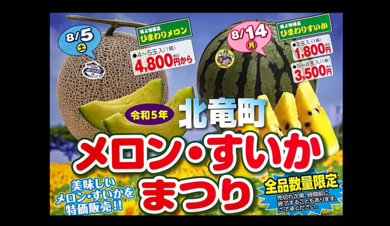 2023年8月3日(木) メロン直売会:8月5日(土)08:30~11:00 JAきたそらち北竜支所(北竜選果場前) すいか直売会:8月14日(月)08:30~11:00 JAきたそらち北竜支所(北竜 […]