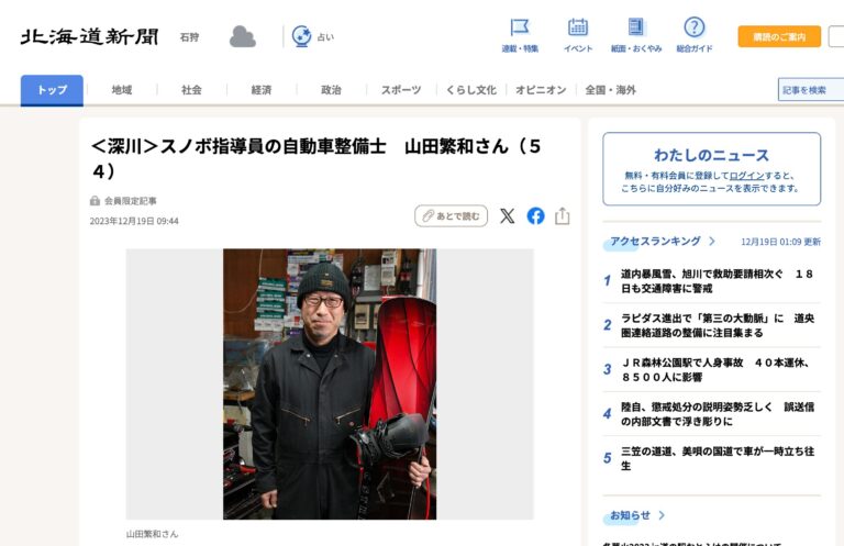 2023年12月20日(水) 北海道新聞(札幌市)が運営するインターネットサイト【北海道新聞】に、「<深川>スノボ指導員の自動車整備士 山田繁和さん(54)」の記事(12月19日付け)が掲載されていま […]