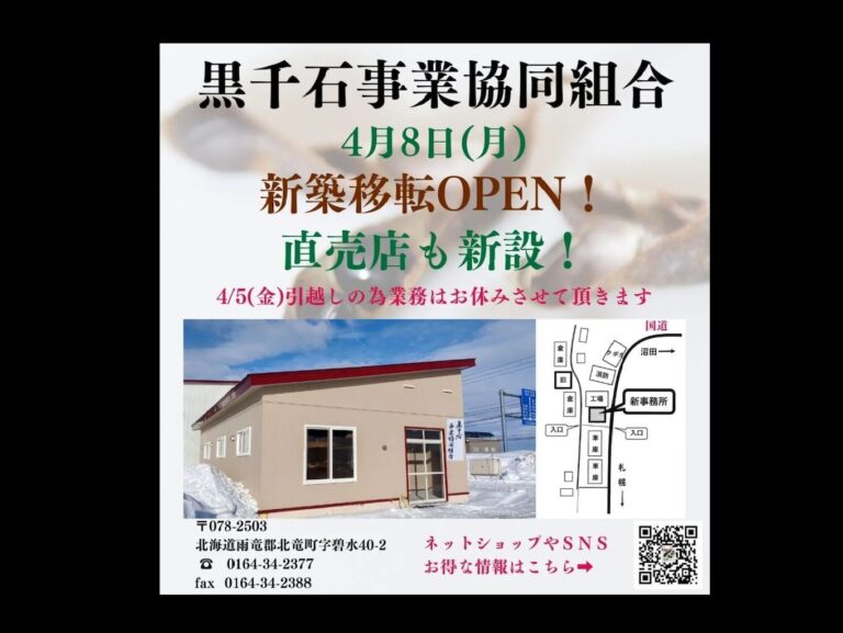 Thursday, March 28, 2024: The Kurosengoku Business Cooperative (Chairman Yukio Takada) will open its new office and factory store on Monday, April 8! To celebrate the opening, the first 100 customers will receive a free gift of Kurosengoku Kinako and […]