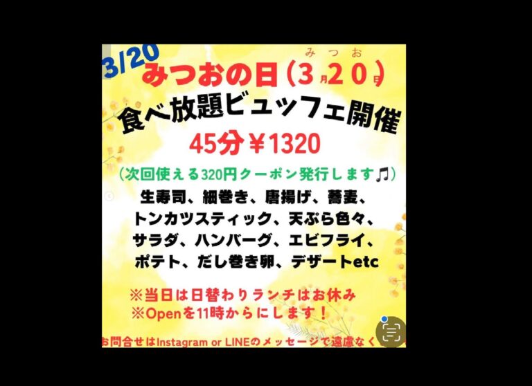 2024年3月21日(木) 3月20日(水)11時より、北竜町のお食事処向日葵にて、ビュッフェランチ「みつおの日」が開催されました。 みつおの日・お食事処向日葵 祝日でもあり、ご家族で楽しむ大勢の方々 […]