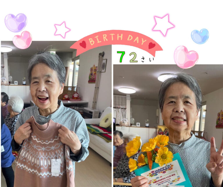 2月17日B棟 お誕生日の方 👏 みんなにお祝いされとても喜ばれていました 🤗 とてもステキな笑顔です 😊✨ お誕生日おめでとうございます👏【グループホーム 碧水】