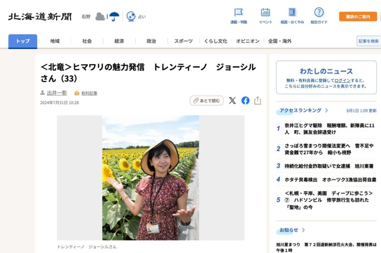 2024年7月31日(水) ヤフー株式会社(東京都)が運営するインターネットサイト【Yahoo!ニュース】に、「【北海道の天気 7/30(火)】日本最大級のひまわり畑!北海道北竜町に200万本の花 あ […]