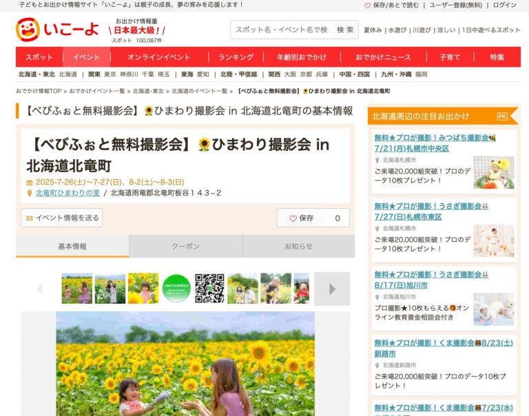 2025年7月17日(木) アクトインディ株式会社(東京都品川区)が運営するインターネットサイト【子どもとお出かけ情報サイト「いこーよ」】に、「【べびふぉと無料撮影会】🌻ひまわり撮影会 […]