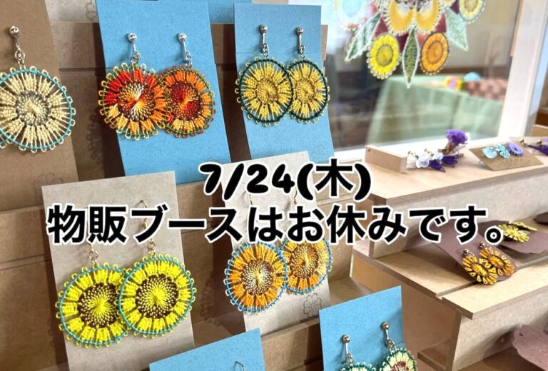 誠に勝手ながら、 7/24(木)は物販ブースをおやすみします。コーヒースタンドの方は Openしております【ハナマルシェ】