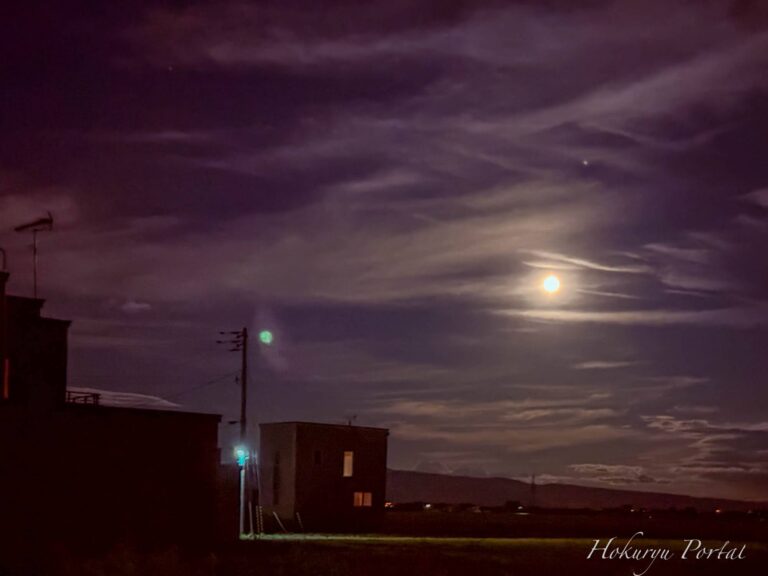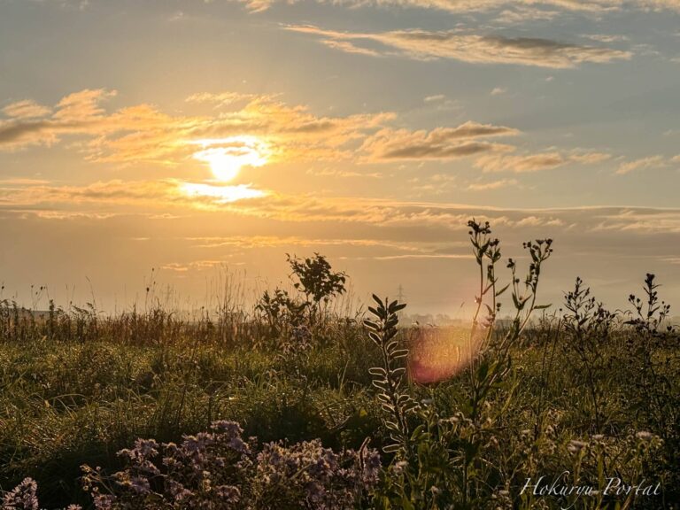 心和む瞬間「北竜町の新月の朝日、澄んだ空気に輝く光」