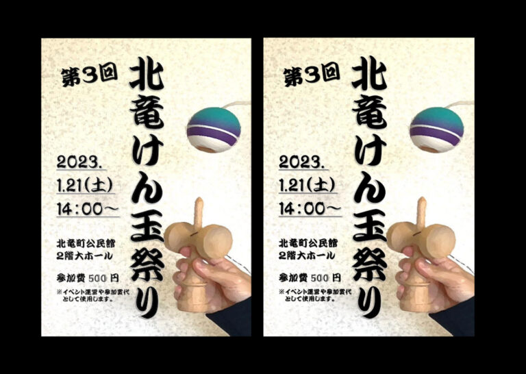 2023年1月11日(水) 1月21日(土)14:00から『第3回北竜けん玉祭り』が、北竜町公民館大ホール(2F)で開催されます。ユニコーンレースやトリックバトルなどの競技が用意されていますので、奮っ […]