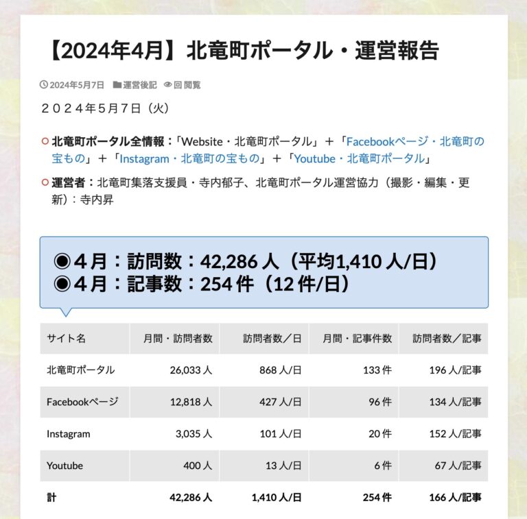 2024年5月7日(火) 北竜町ポータル全情報:「Website・北竜町ポータル」+「Facebookページ・北竜町の宝もの」+「Instagram・北竜町の宝もの」+「Youtube・北竜町ポータル […]