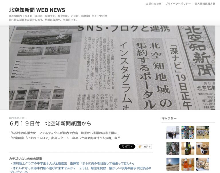 2024年6月20日(木) 北海道新聞社(札幌市)が運営するインターネットサイト【北海道新聞デジタル】に、「<人口減社会 空知の現在地>高齢化集落、支援員お手伝い 北空知で広がる サークル活動紹介や就 […]