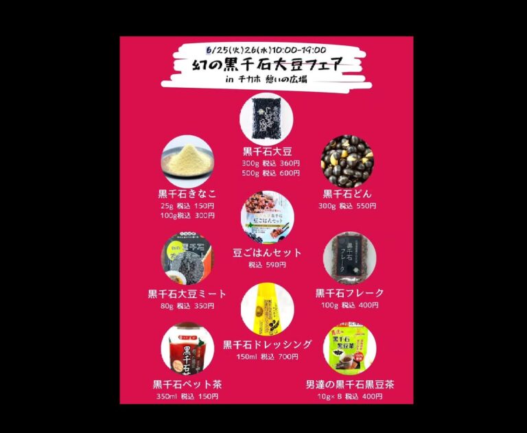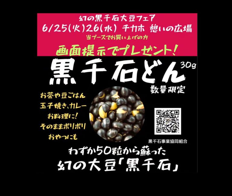 2024年6月14日(金) 6月10日(月)・6月11日(火)、チ・カ・ホ(札幌駅前通地下広場)にて、黒千石事業協同組合が「幻の黒千石大豆フェア in チカホ」を単独で出店。 幻の黒千石大豆フェア i […]