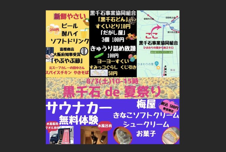 8/3(土) 10:00-15:00 黒千石 de 夏祭り@黒千石事業協同組合 敷地内【黒千石事業協同組合・常務】