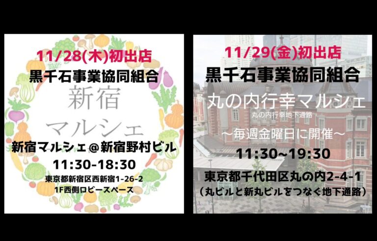 2024年10月15日(火) 更新:11月5日(火) 【11/28(木)11:30-18:30】新宿マルシェ @ 新宿野村ビル 初出店です 【11/29(金)11:30-19:30】丸の内行幸マルシェ […]