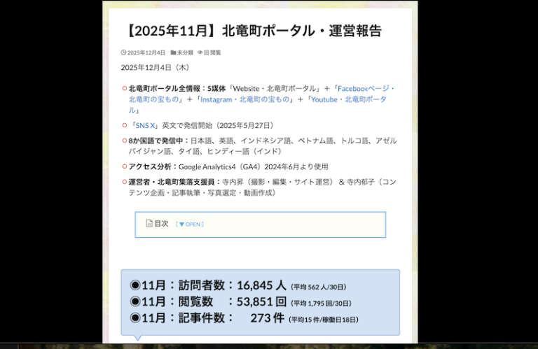 2025年12月4日(木) 北竜町ポータル全情報:5媒体「Website・北竜町ポータル」+「Facebookページ・北竜町の宝もの」+「Instagram・北竜町の宝もの」+「Youtube・北竜町 […]