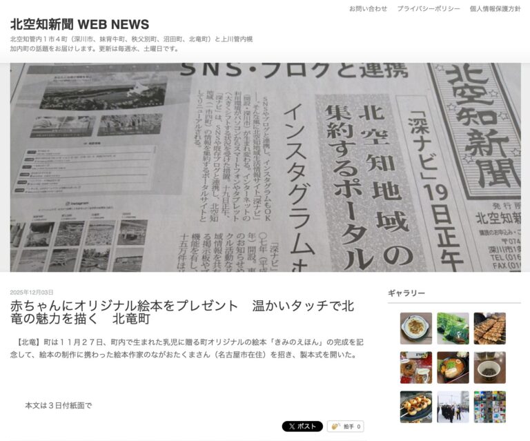 2025年12月4日(木) 北空知新聞社(深川市)が運営するインターネットサイト【北空知新聞】に、「赤ちゃんにオリジナル絵本をプレゼント 温かいタッチで北竜の魅力を描く 北竜町【北空知新聞】」の記事( […]
