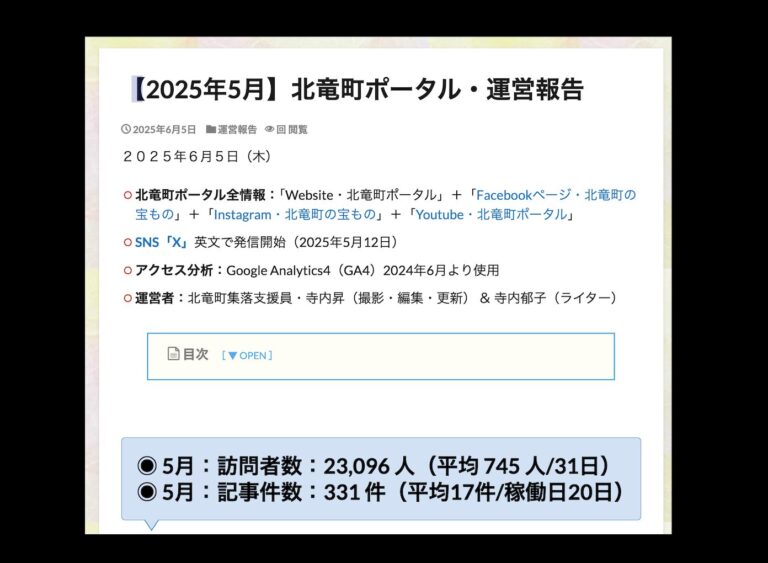 2025年6月5日(木) 北竜町ポータル全情報:「Website・北竜町ポータル」+「Facebookページ・北竜町の宝もの」+「Instagram・北竜町の宝もの」+「Youtube・北竜町ポータル […]