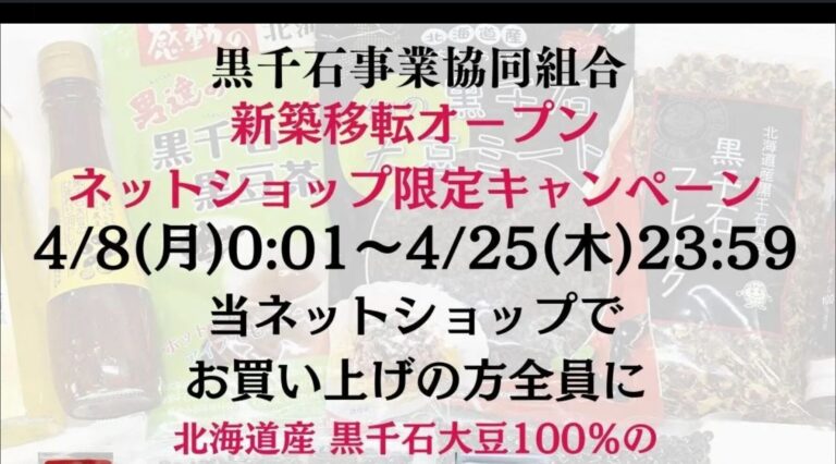 2024年4月8日(月) この投稿をInstagramで見る 黒千石事業協同組合常務(@kurosenjyoumu)がシェアした投稿 黒千石事業協同組合・ネットショップ 黒千石大豆は、甘味があって豊か […]