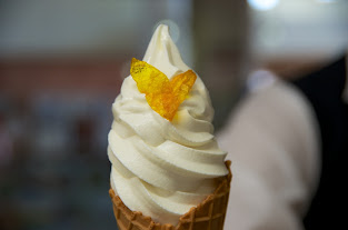 濃厚なバニラソフトに黒千石きなこをたっぷりかけました