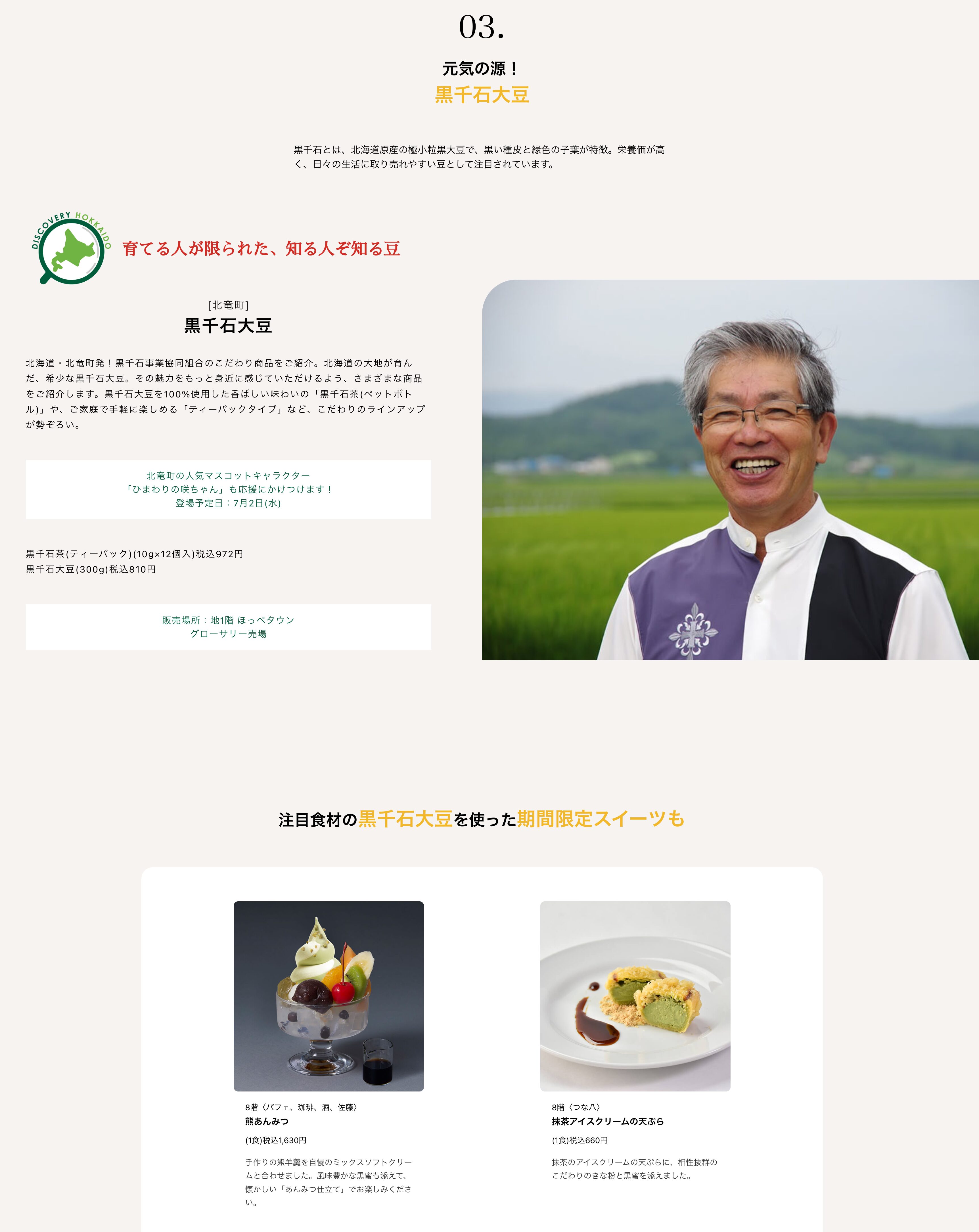 2 กรกฎาคม (พุธ) - 8 กรกฎาคม (อังคาร) [บูธกิจกรรมที่ Daimaru Sapporo Store] คัดสรรโดยผู้ซื้อของเราอย่างพิถีพิถัน! ลิ้มรสถั่วเหลืองคุโรเซ็นโงกุในตำนานที่ "Discover Hokkaido"!