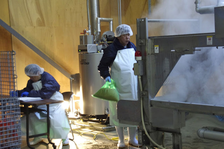 60℃の温湯と空気のブロアーで殺菌中(10分間)