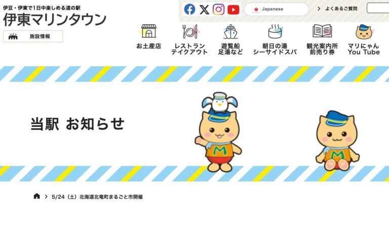 "Hokuryu Kasabası Bütün Pazarı" "Ito Marine Kasabası Yol Kenarı İstasyonu" web sitesinde yer alıyor!