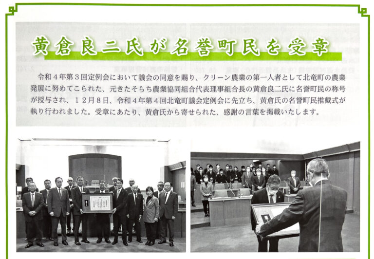 Thứ sáu, ngày 6 tháng 1 năm 2023 Chúng tôi xin giới thiệu bài viết "Ông Ryoji Kikura được trao tặng Giải thưởng Công dân danh dự" được đăng trên tạp chí "Quan hệ công chúng Hokuryu" số tháng 1 năm 2023 (số 689). Ryoji Kikura đã được trao tặng Giải thưởng Công dân danh dự của thị trấn tại lễ kỷ niệm thường kỳ lần thứ 3 […]